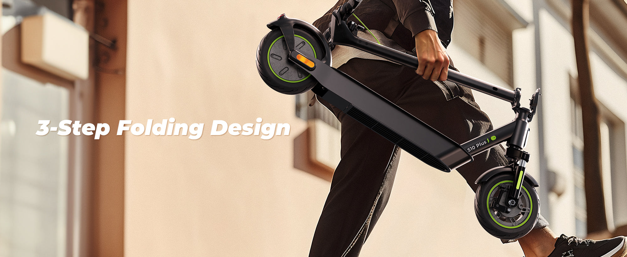 ✅10 inch Self-Sealing Tire, ALUMINUM Frame, Front Suspension, 3 Step to Fold, 330Lbs Max Load, 6.5-Inch Wide Deck