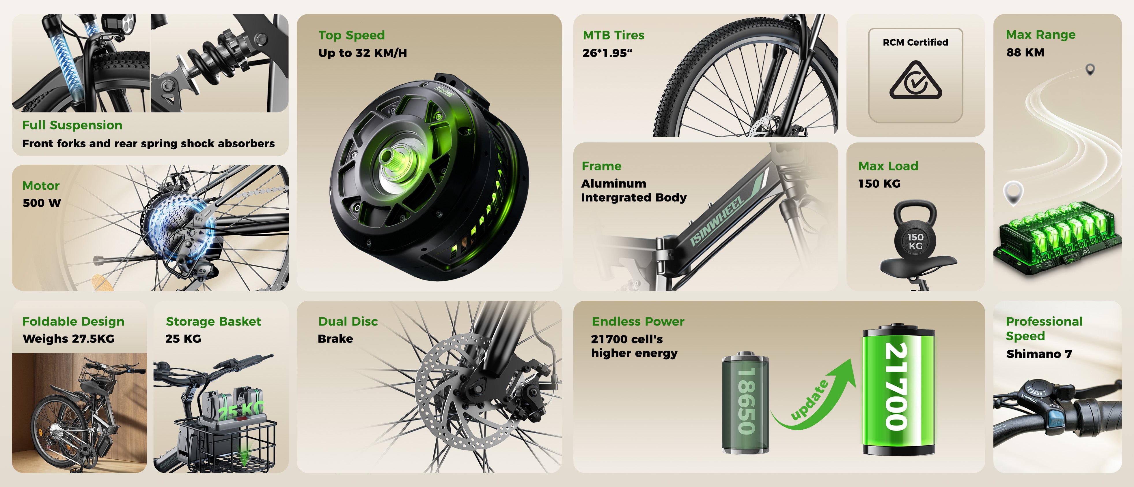 ✅500W Motor, Max Speed 32 KM/H.