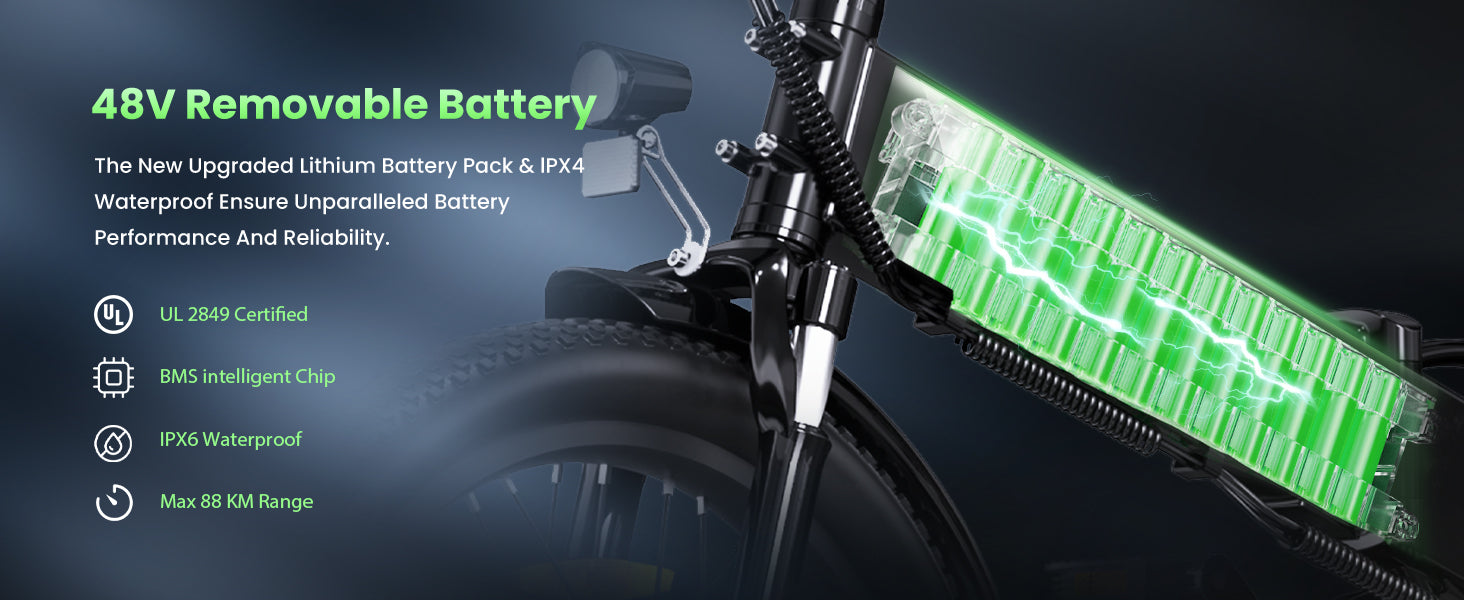 ✅360Wh Battery, Maximum Range up to 88+KM, 3-4 Hours Charging Time.
