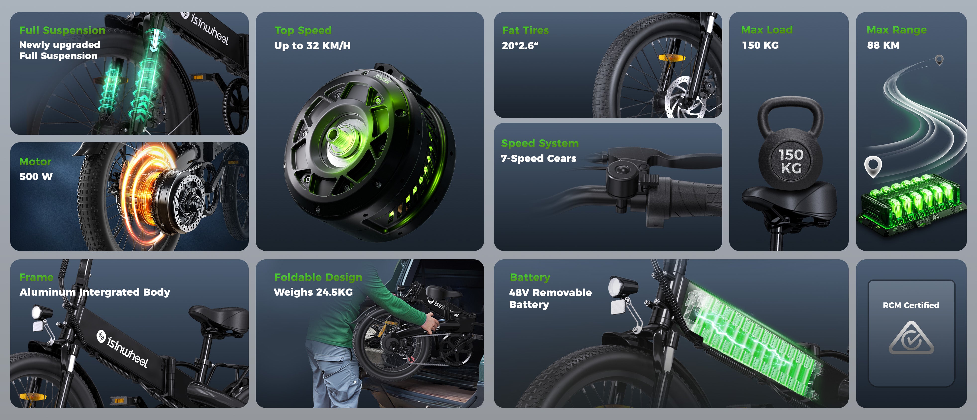 ✅500W Rated Motor, Max Speed 32 KM/H.
