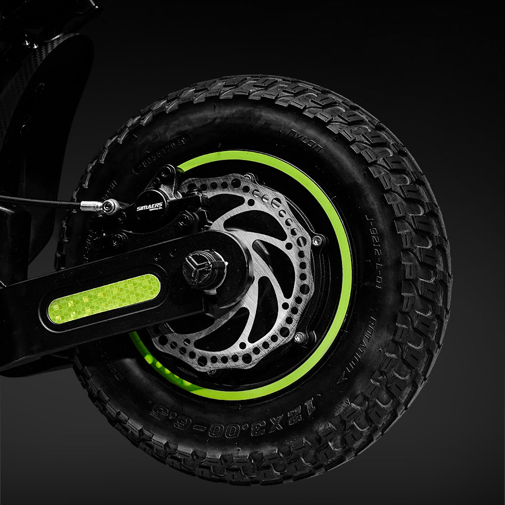 Conquer any road with GT4’s oversized 12-inch off-road tires — larger than most scooters on the market. They deliver superior grip, shock absorption, and stability on rugged trails or city streets, ensuring a smoother, more confident ride wherever you go.