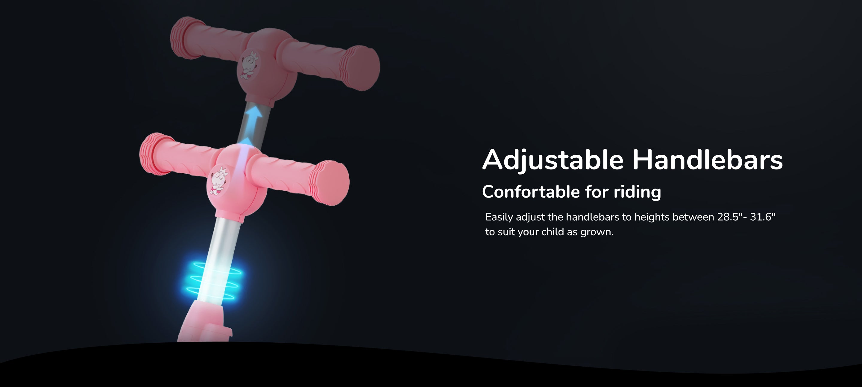 A: Yes, The MINI electric scooter for kids has 3 levels of adjustable height to suit your child as they grow. Easily adjust the height of the handlebars from 28.5"- 31.6".