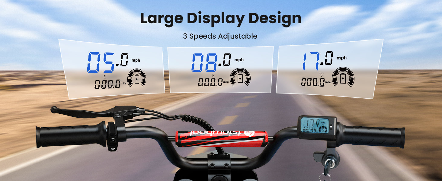 ✅ 500W High-Power Motor, 3 Speed Modes (5/8/17 MPH), Large LCD Display