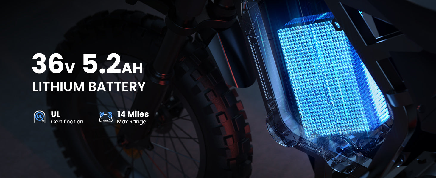 ✅ 36V 5.2Ah Lithium Battery, Up to 14 Miles Range, UL2849 Certified Safety