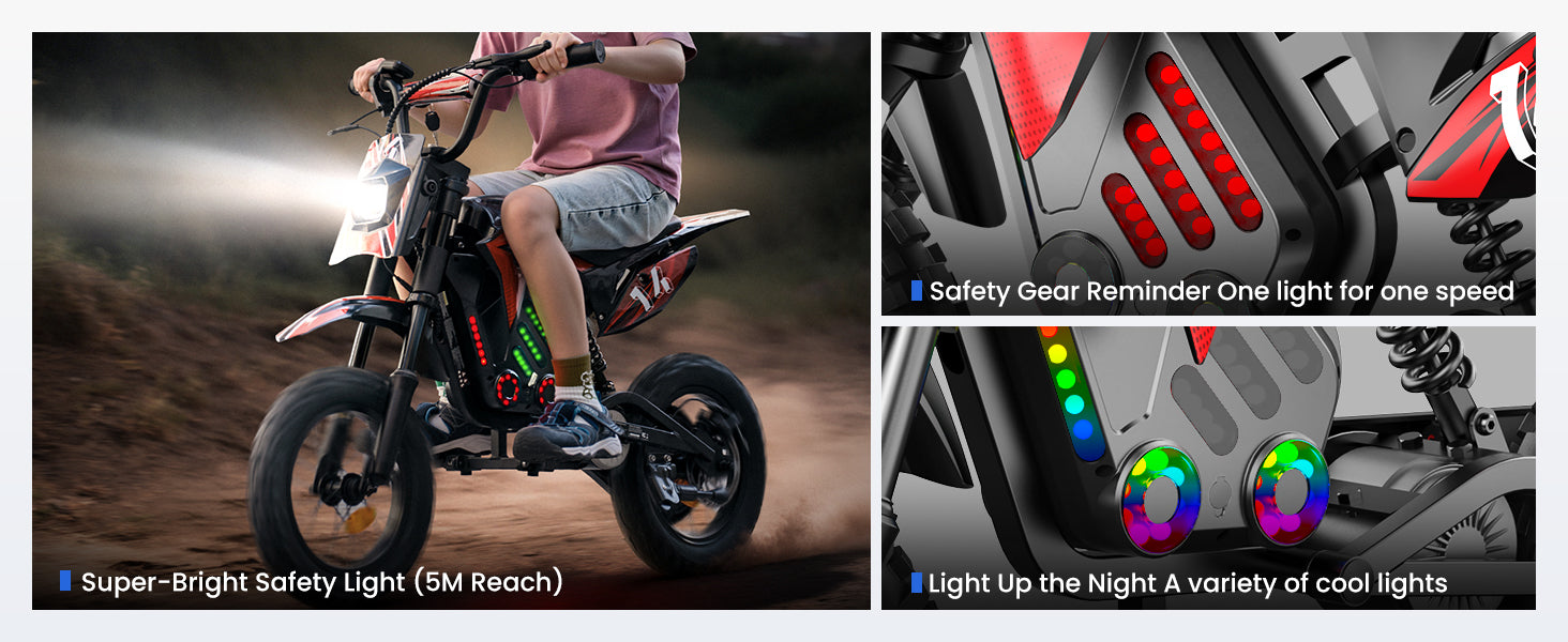 ✅ Bright Headlight, Color Gear Indicators, Dynamic Multicolor LED Lights
