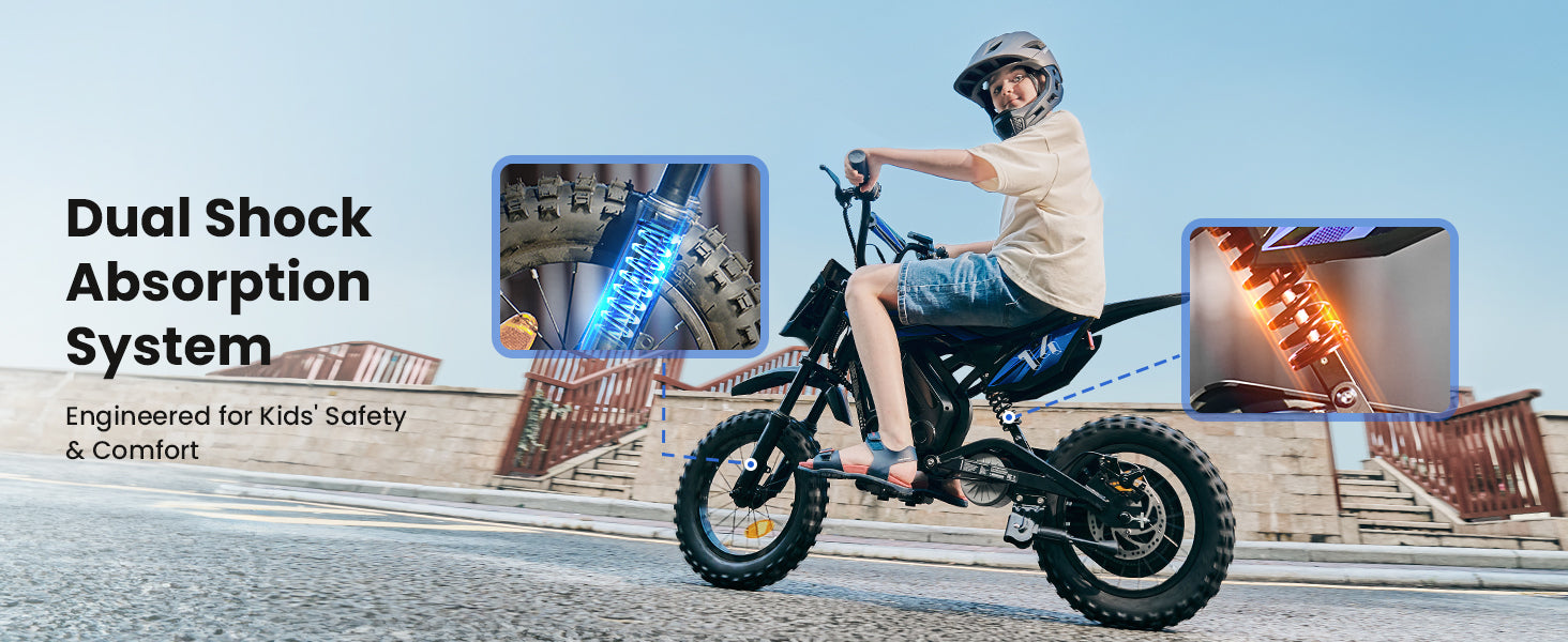 ✅ 14" Pneumatic Tires, Front & Rear Dual Suspension, Smooth All-Terrain Ride