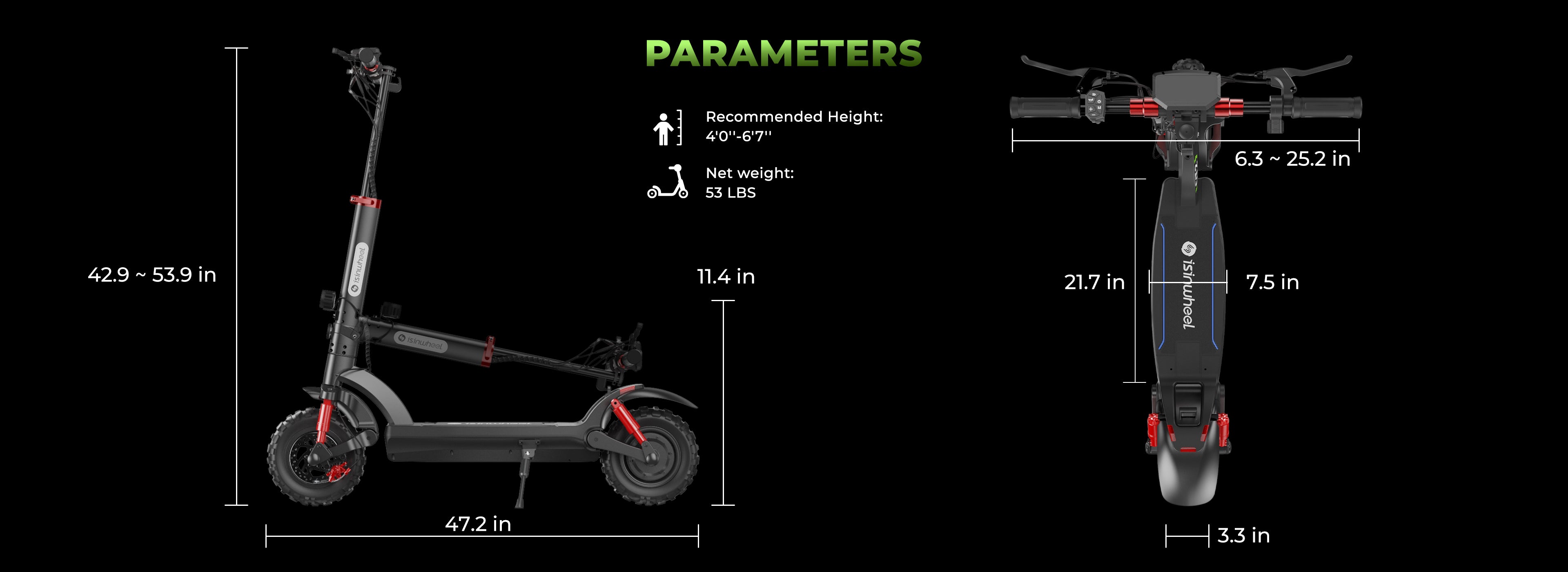 8.isinwheel electric scooter range claims are based upon standard testing regulations with a 160 lbs rider at 25 degrees Celsius on a stable surface.