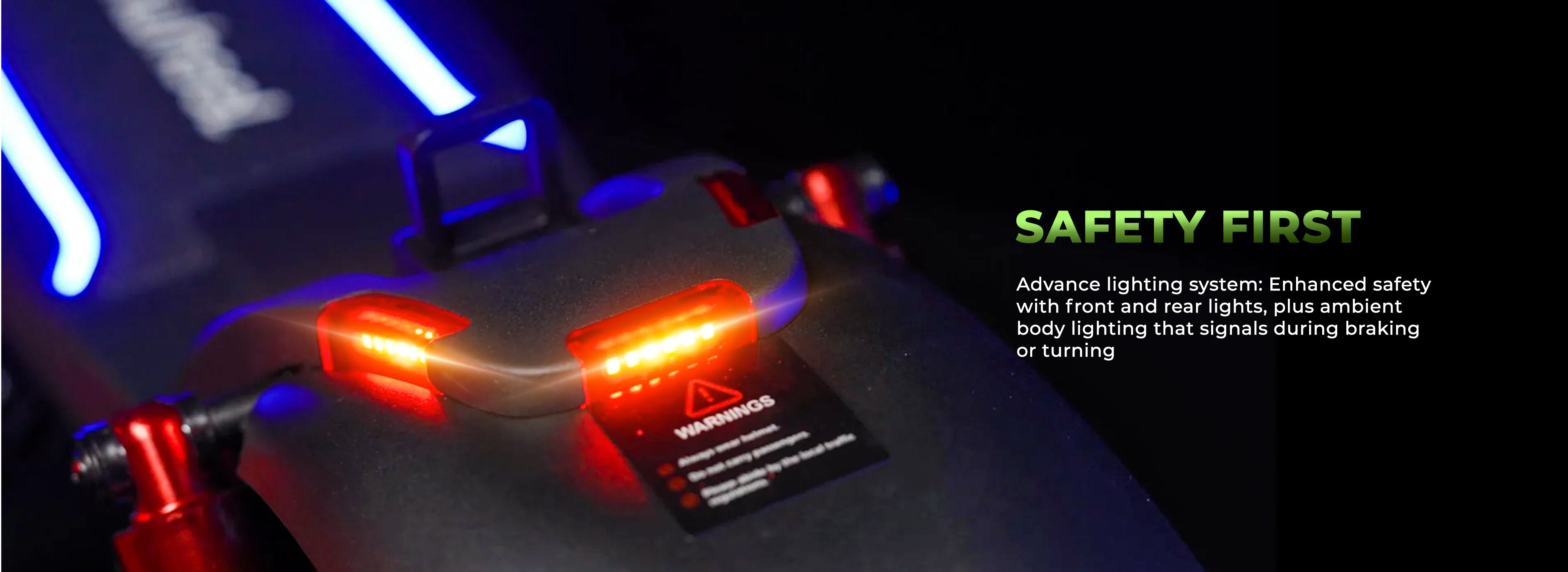| LED Lighting Front headlight and ambient lights, turn signals and brake light | Recommended Age 14+ Years |
