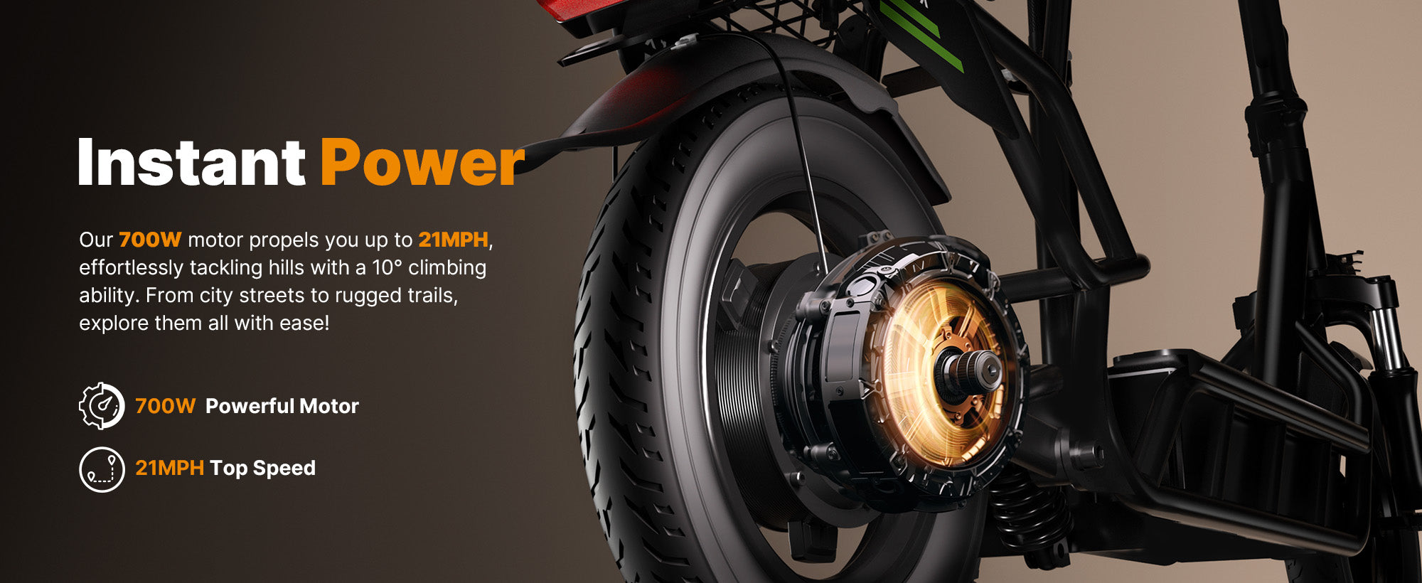 ✅700W Motor, Max Speed 21 MPH, 25% Hill Climbing