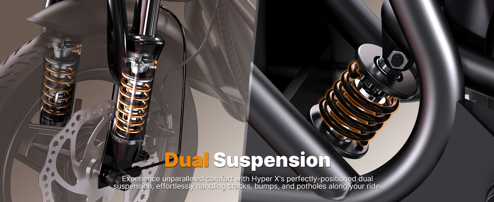 ✅14 inch Pneumatic Tire, Dual Hydraulic Suspension, Dual Braking Systems, 264Lbs Max Load