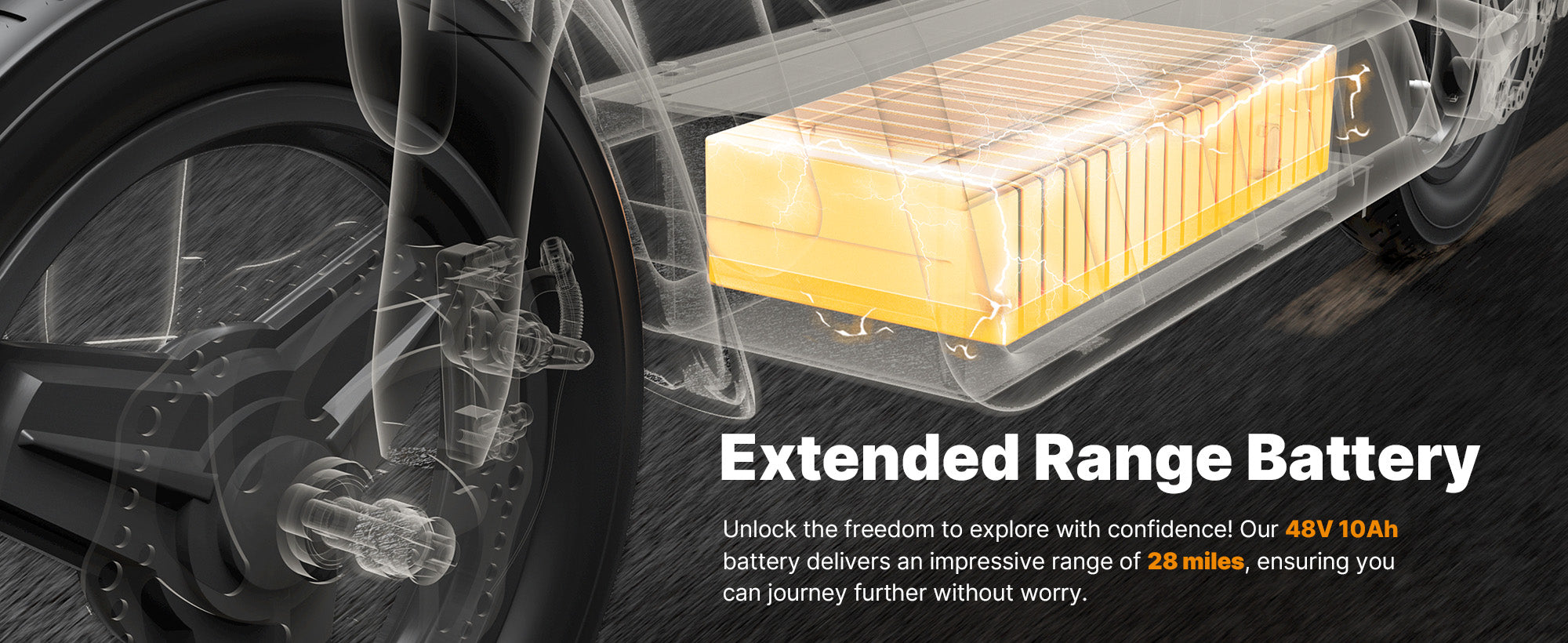✅48V 10Ah Battery, 28 Miles Max Range, 5–6H Charging Time