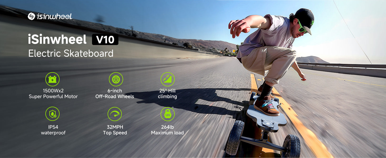 isinwheel V10 3000W Off Road Electric Skateboard with Belt Motors & Ambient Light
