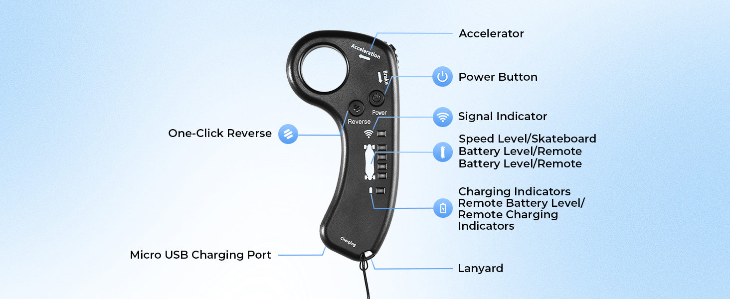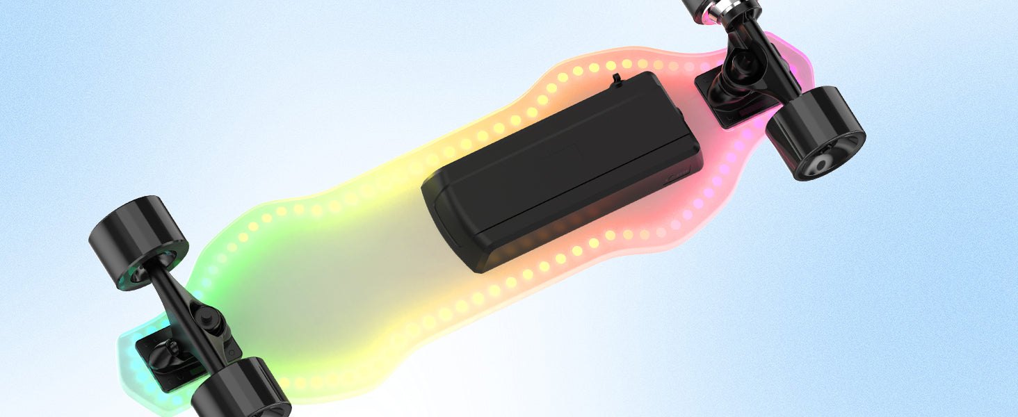 allowing you to easily monitor the battery level from the remote for more convenient riding It's the only electric skateboard with full-bodylights. Additionaly,it features an upgraded remote control with one-touch steering and a power indicator