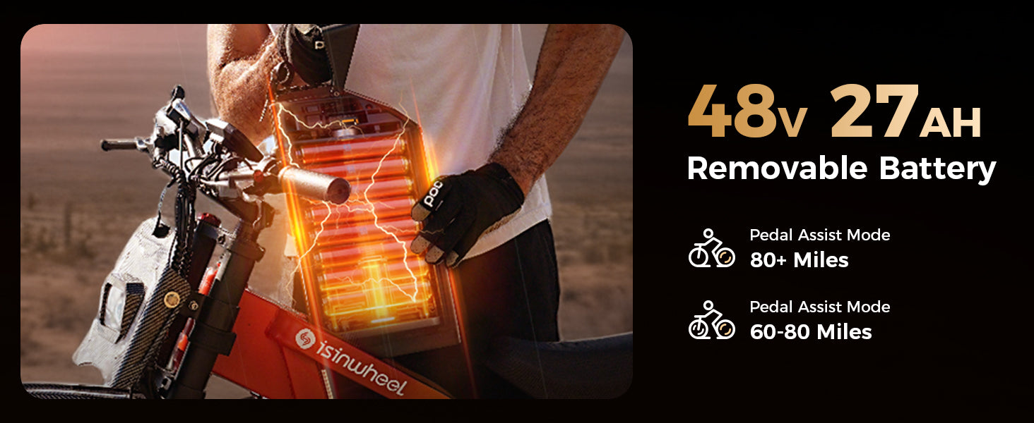 ✅48V 27Ah Battery, Maximum Range up to 150+Miles, 9-10 Hours Charging Time.
