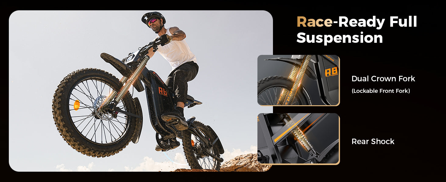 ✅Dual Crown Fork and Rear Shock, Removable Integrated Battery