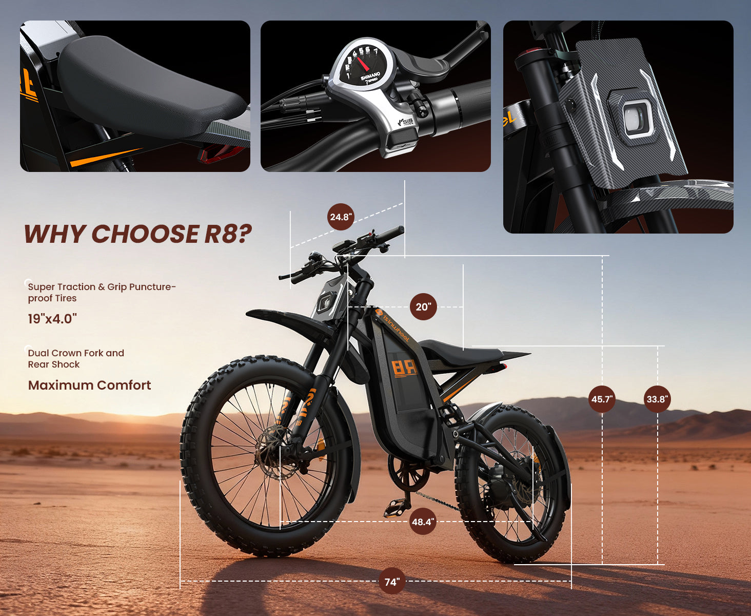 R8 Electric Dirt Bike for Adults 35 MPH & 150 Miles