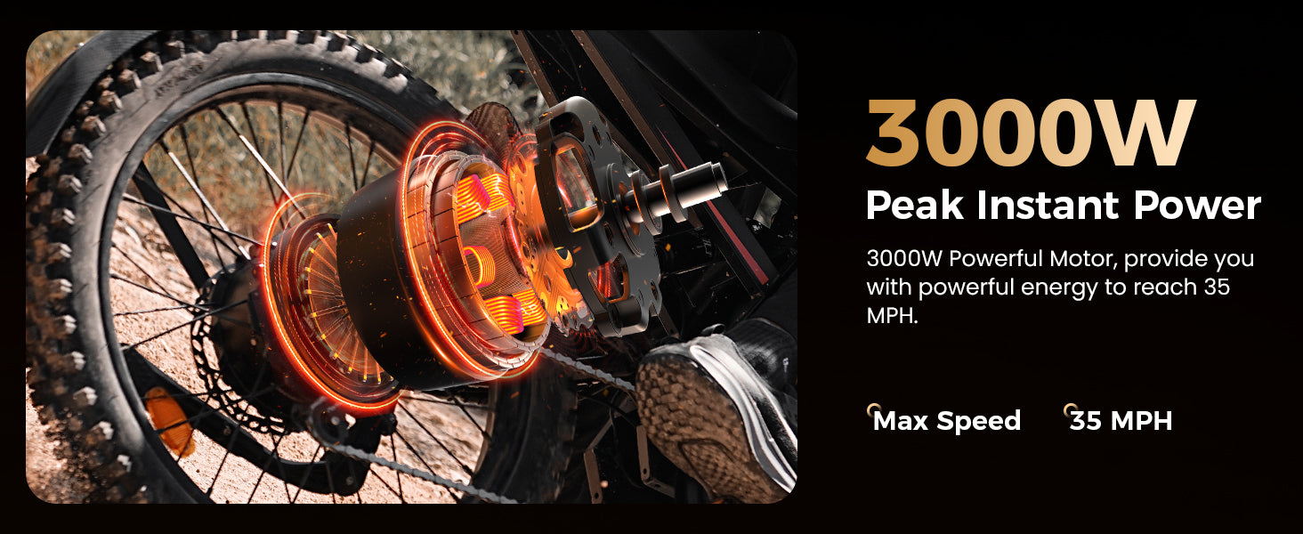 ✅3000W Peak Motor, Class 3, Max Speed 35 MPH.