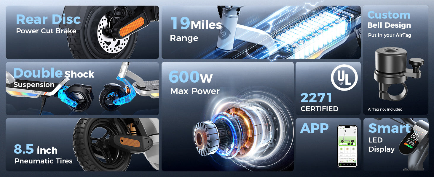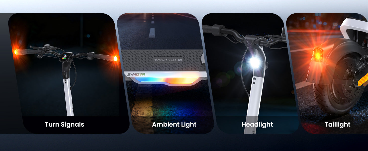 - Cool ambient lights, anti-slip deck, and handlebar turn signals enhance both style and safety.