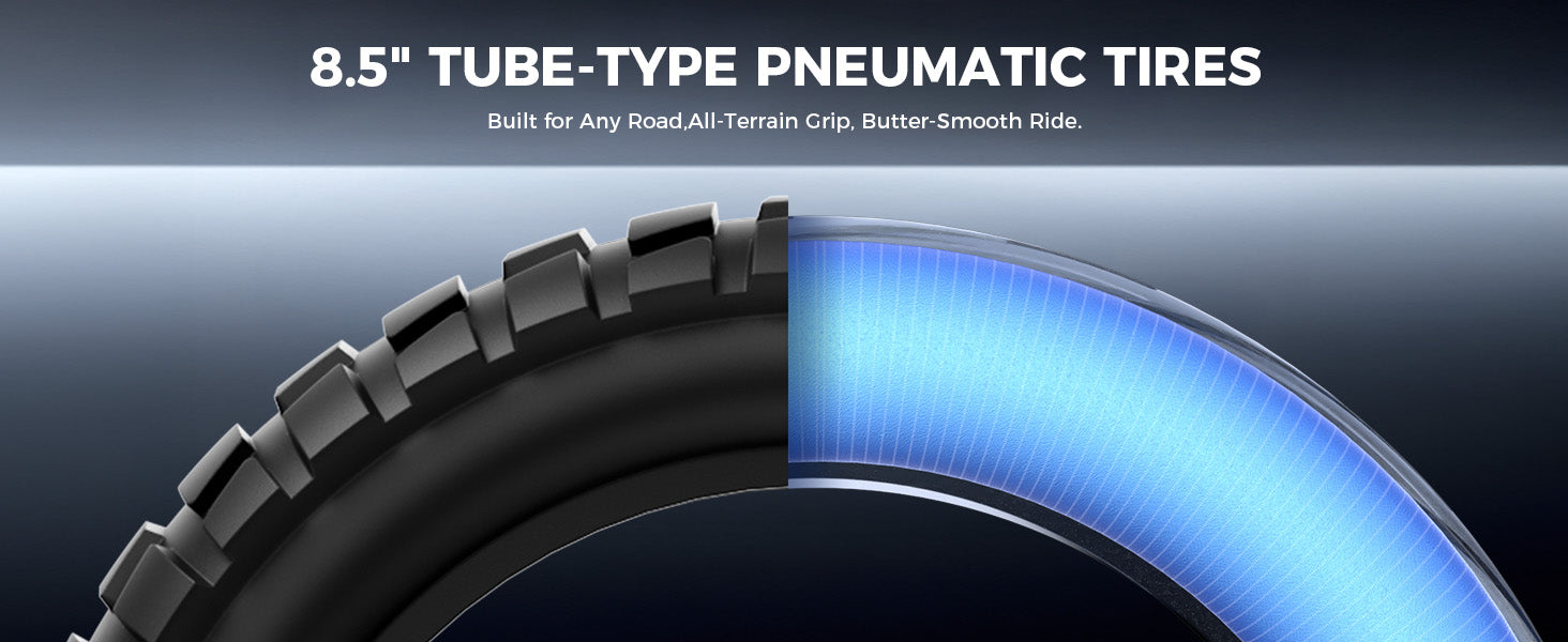 ✅8.5 inch Pneumatic Tire, Front and Rear Dual Suspension, Disc Brake, Easy to Fold