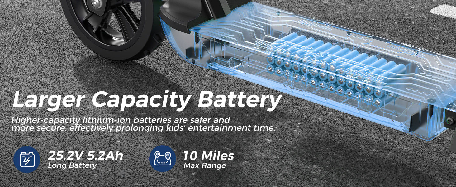 ✅ 25.2V 5.2Ah Lithium Battery, Up to 10 Miles Range, UL2849 Certified Safety