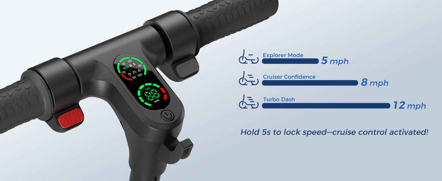 ✅ 250W High-Power Motor, 3 Speed Modes (5/8/12 MPH),Colorful LCD Display