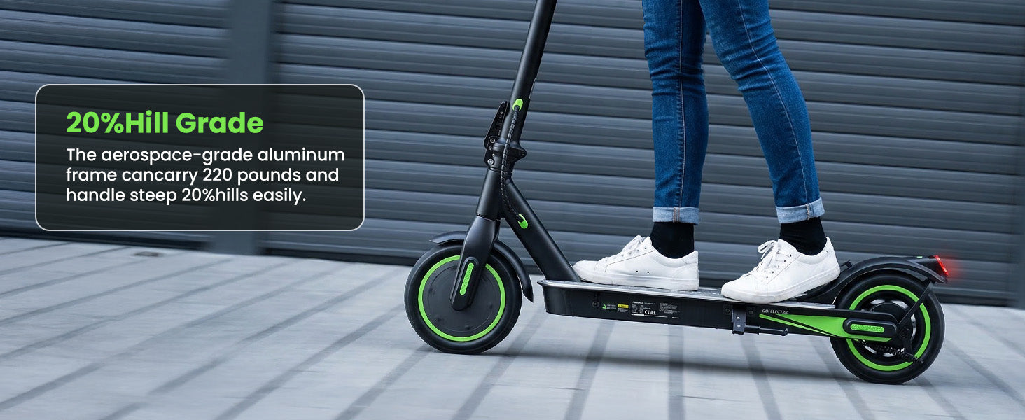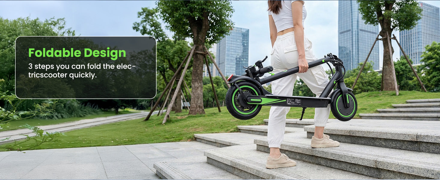 ✅8.5 inch Pneumatic Tire, ALUMINUM Frame, EABS Brake & Rear Disc Brake, 3 Step to Fold, 220Lbs Max Load